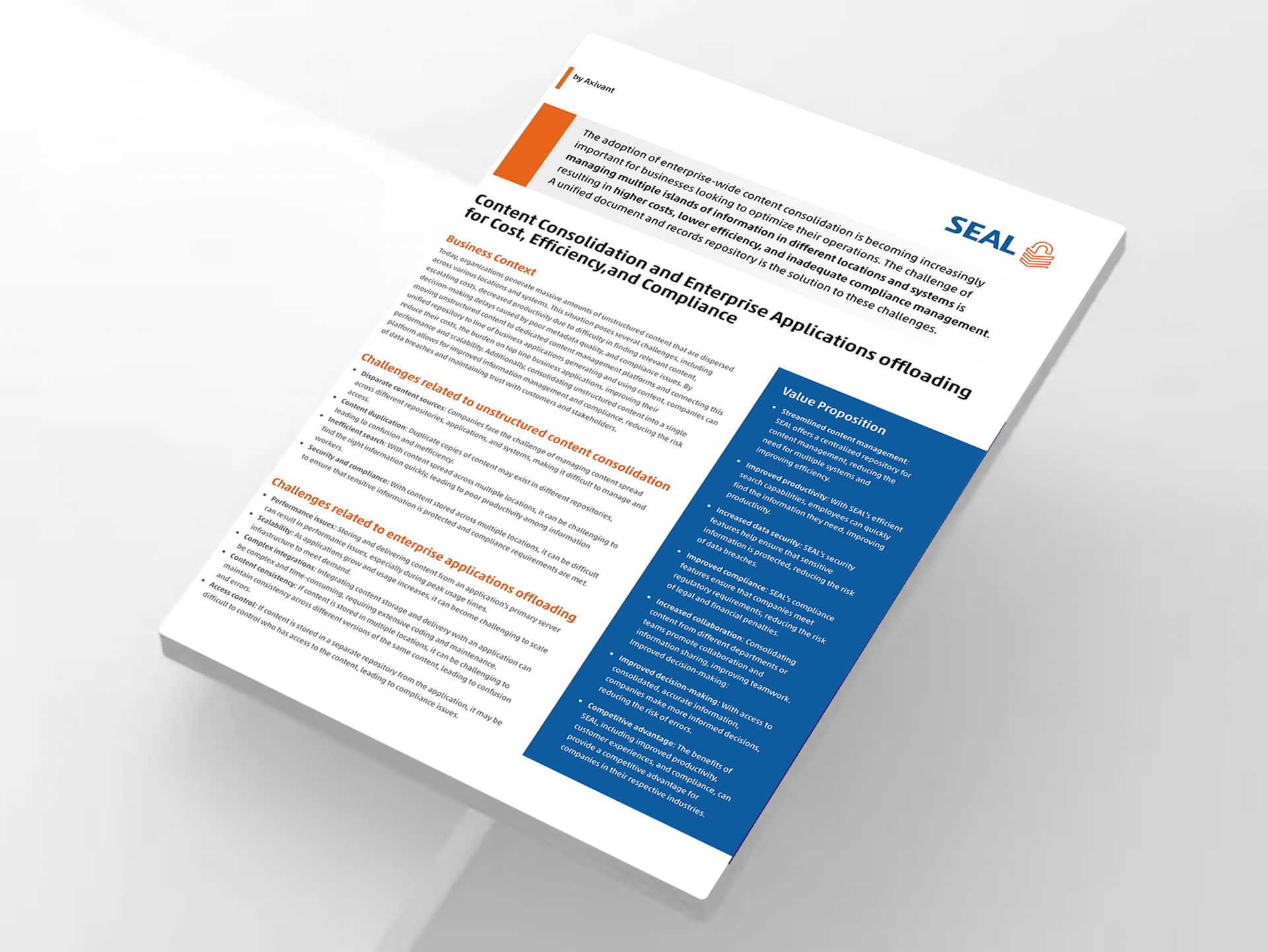 SEAL is a next-generation software platform that harnesses the power of AI and metadata-driven content management to deliver content efficiency, compliance and automation. With its low-code digital process automation capabilities, SEAL can help businesses streamline their content management and automate their compliance processes while connecting with major enterprise applications generating unstructured content.